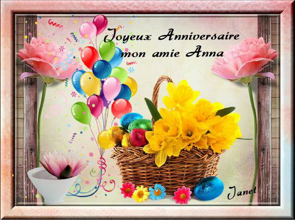 Bonjour,mon amie Janet!Un très beau kdo pour notre amie Anna,elle va être contente!J'éspére que tu vas bien ce matin? Je te souhaite une bonne fête des rameaux!Amitié et bisoux de ton amie Domie.